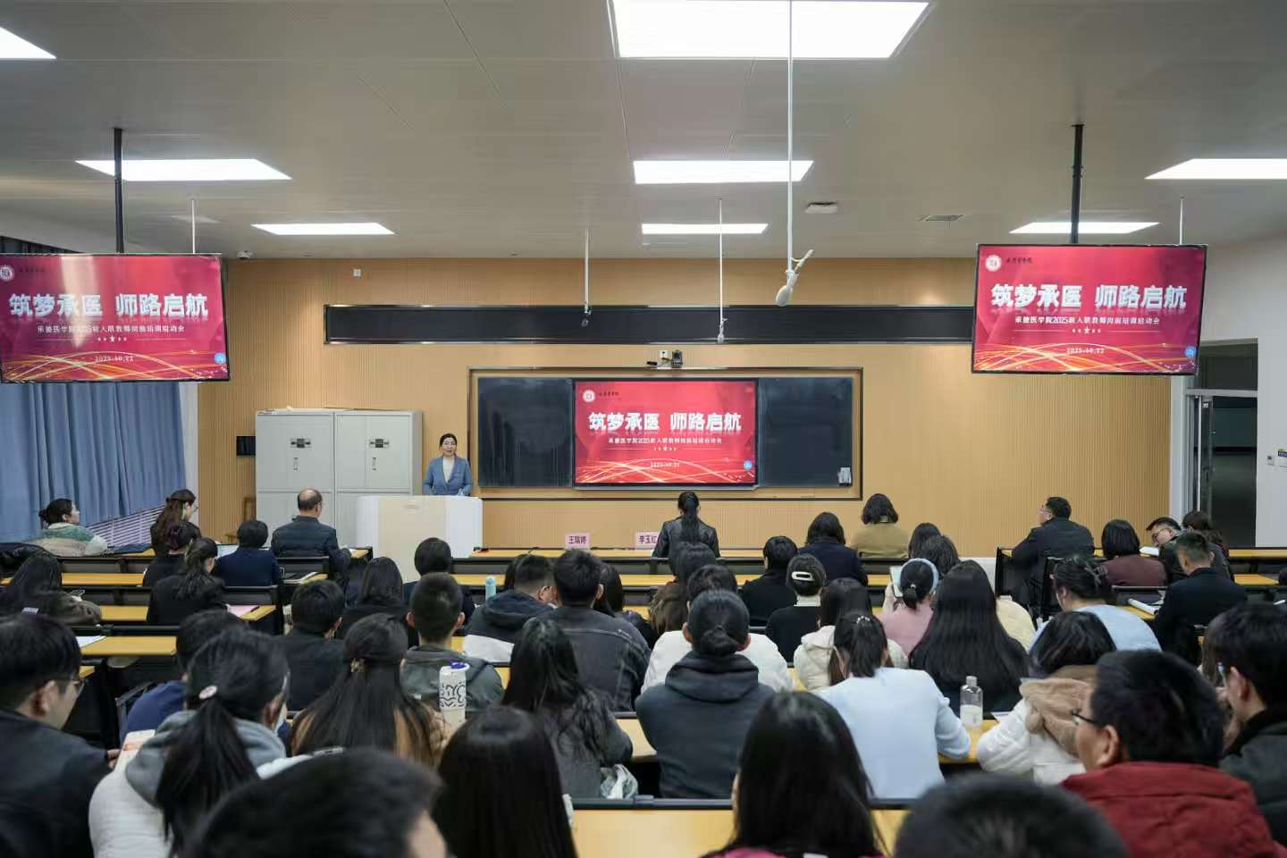 10月22日,我校在教学楼108教室隆重举行2025年新入职教师岗前培训启动会。学校党委副书记、校长李玉红,党委常委、副校长王瑞婷出席会议,各相关部门负责人、各教学院系负责人以及学校教学督导组,全体新入职教师参加会议。会议由王瑞婷主持。