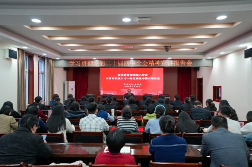 为深入学习贯彻习近平总书记在党的二十届四中全会上的重要讲话和全会精神,深刻理解全会关于新征程上推进中国式现代化的战略部署和任务要求,精准把握全会关于教育改革发展的新部署新要求。11月26日下午,校党委书记唐世英在行政楼412会议室作题为《聚焦教育强国核心使命,以教育科技人才一体化推进中国式现代化》的宣讲报告,部分师生代表、各二级党组织书记参加报告会。 唐世英在报告中深刻阐释了党的二十届四中全会的重大意义与核心内涵,重点阐述了教育、科技、人才在中国式现代化建设中的基础性、战略性支撑作用。他强调,全会是在我国迈上全面建设社会主义现代化国家新征程、向第二个百年奋斗目标进军的关键时期召开的一次具有里程碑意义的重要会议。全会对进一步全面深化改革作出系统部署,为新时代教育事业发展指明了方向,全校上下要深刻领会党中央对教育、科技、人才作出的战略部署,切实把思想和行动统一到党中央决策部署上来,把握教育强国建设的核心使命,主动融入国家发展大局。